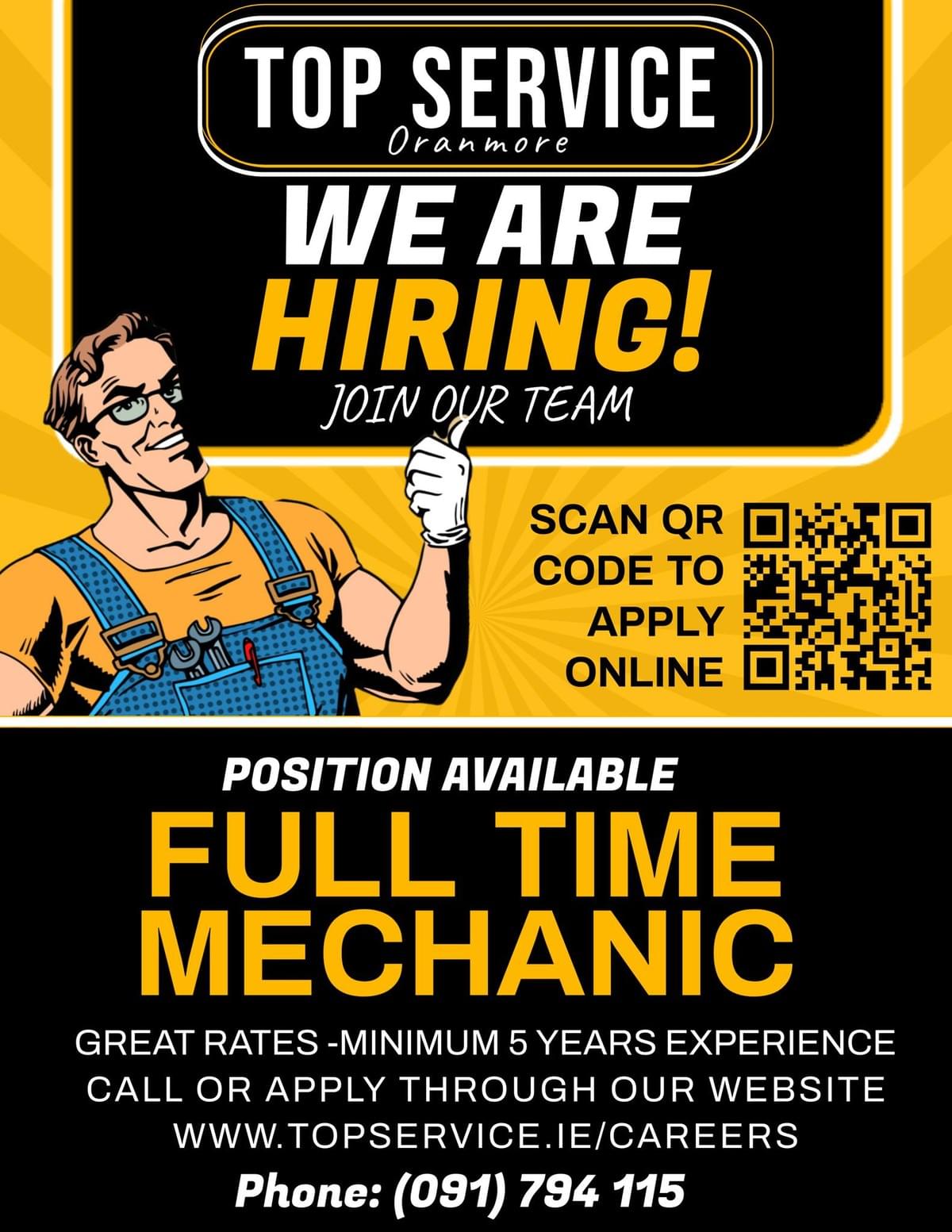 🚗 Mechanic Wanted – Top Service Oranmore, Co. Galway 🚗